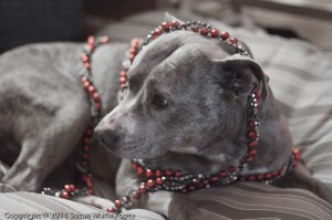 Lucy had a couple of false starts, the last one requiring a behavior assessment. She got a rating of “excellent” on everything but dog-to-dog interactions. She was just rude and inappropriate. We didn’t get a chance to work on this much. After all it was Christmas and I was all about cuddling up with Lucy on the couch – lots of love and affection.