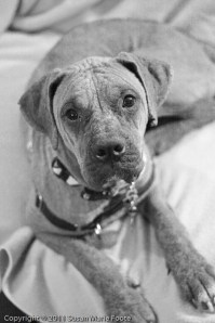 Well, I think it’s time for a proper introduction to my current foster baby. Dexter, as he’s currently listed in the Wake County Animal Center database, is still just a puppy at around 11 months old, but he stands about two feet high and probably weighs close to 50 lbs. Current opinion has his breed(s) identified as part Mastiff and part Boxer.