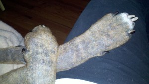 When I brought Rex home that first night he was really a pretty pitiful pup. His skin was “burnin’ up” as it tried to heal itself and he was starting to get a cold. He wasn’t interested in any of the healthy treats I had grabbed for him and he spent all of his time sleeping.