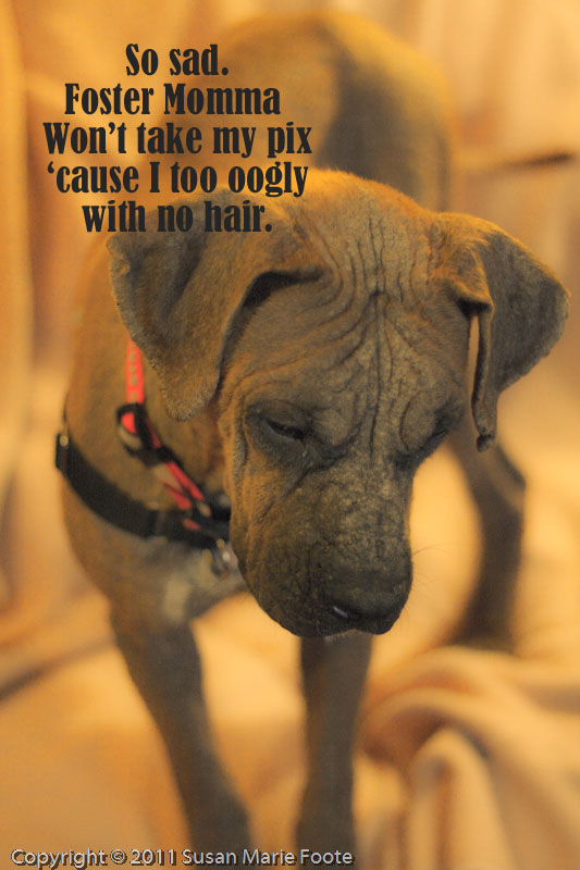 I made a couple of attempts to train him to associate tasty treats with the crate, but he never really liked it. It dawned on me that he was never going to truly like his crate like Snips did. One morning he wouldn’t even get his favorite stuffie (his Mr. Bill doll) from the back of the crate ‘cause he couldn’t reach it while keeping his back feet firmly planted on the carpet in front of the crate. A little Internet surfing for answers provided a night or two of success – I wore him out with a walk and training before bed and covered his crate with a blanket like a birdcage. I tried letting Rex sleep on a dog bed in our bedroom, but he still smells and has scratching fits in the middle of the night that make his tags jangle like crazy. In the end, I will admit to giving in and sleeping on the couch with Rex so that Charlie could get some sleep.