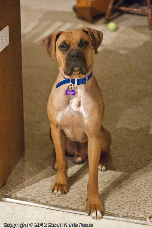 He’s learned to like his crate, at least when we’re out of the house, so when you make him up a peanut butter and banana Kong he trots right in with a nary a word. Now if we’re still in the house and have put him up for his own safety or in time-out, then he has plenty of words for us … although he’s getting better about it with each instance.