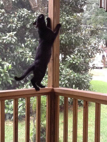 So, Tic Tac is known to be fearless where dogs are concerned. He also likes running through the house using walls and furniture to launch off like parkour or freerunning athletes. And that’s where our story begins.