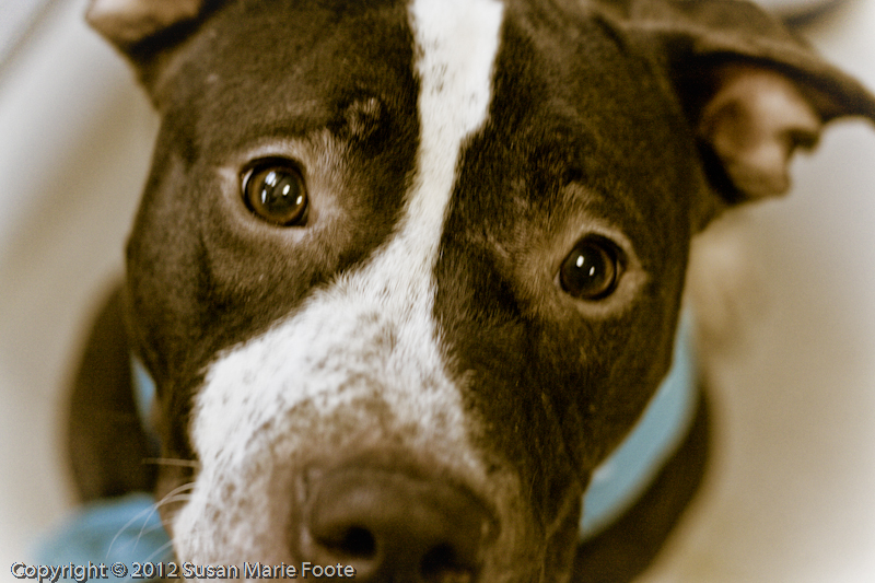 He is a wonderfully sweet and tolerant year-old pittie mix.