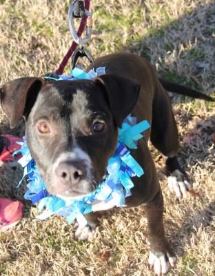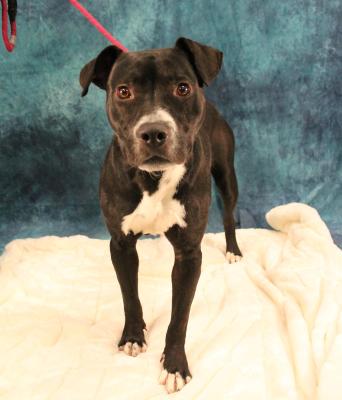 Batman is a little over a year old and came to the shelter as a stray back in the beginning of December. He will probably fill out in the chest a little more, but he is a great size at around 45 lbs. And although at first glance he looks like a black and white dog, if you look at him in bright sunshine you’ll see he is actually a lovely brindle.