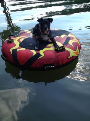“I adore people and I get along well with other dogs. I live with my foster parents and their 2 dogs and we are great friends. I am a big goofball and sometimes I get really excited when I play, so I’ll need a doggie playmate that doesn’t mind a little rough-housing! I also love to eat and I am an excellent swimmer. My foster parents take me to the lake and sometimes I just swim circles around the dock because I love it so much!