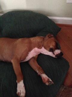 “Sometimes when I get very excited I like to put my mouth on your arm or your hand (I don’t think I am supposed to do that because my foster mom squirted me with a water bottle when I did…I didn’t like that so I am trying to remember not to do that anymore). I have already figured out if I go to the door someone will let me out in the yard and since that is where I go potty I just go to the door if I want to potty. I also go to the door if I want to go out and play with my foster brother. I like to run and make him chase me… we wrestle and play tug of war and go for walks together. He can play pretty rough but I don’t mind.
