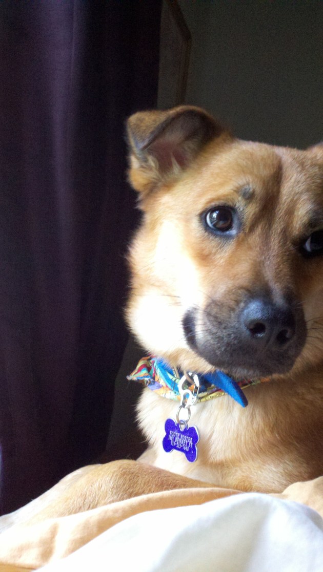 Sookie is fabulous. She’s about two years old and some sort of a Shepherd/Spitz/Collie mix. She is super timid – but very curious about the world around her. With time and an encouraging family (which she now has) she will do great. She will always be a little skittish as her previous family told me that they re-arranged the patio furniture once and she wouldn’t go out the back door – she had to sniff every piece thoroughly before it was all okay again.