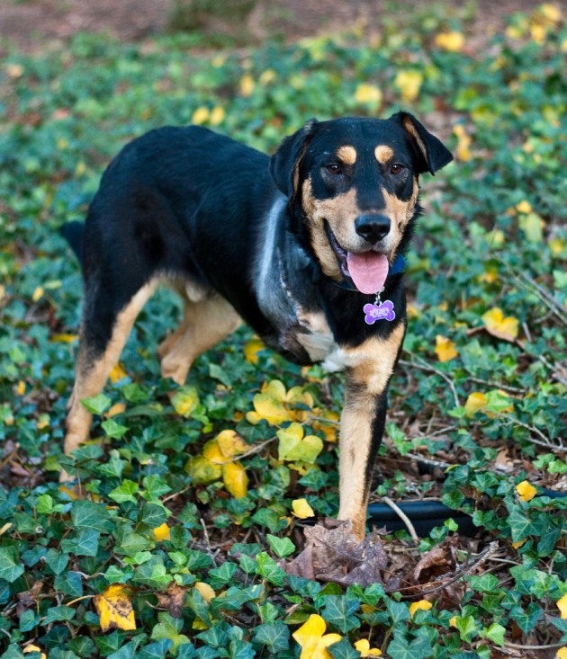 Milton is about a year old and from what I can tell has been living most of his short life on the streets. A very nice man fed him and called the animal control officer when Milton was injured. His injury meant that the vets at the Wake County Animal Center (WCAC) had to amputate his right front leg. Milton is currently around 62 lbs – a big boy – but that doesn’t slow him down. He frolics with our own dog and plays with me like a big puppy.